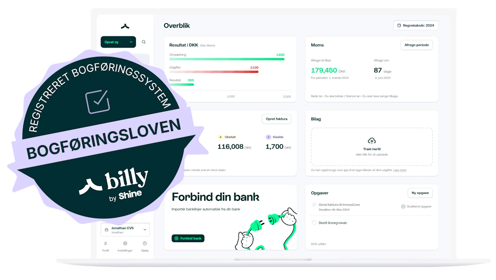 Billy er nemt, billigt og fuldt godkendt – du får alt, du skal bruge for at overholde bogføringsloven, uden at betale for unødige funktioner.