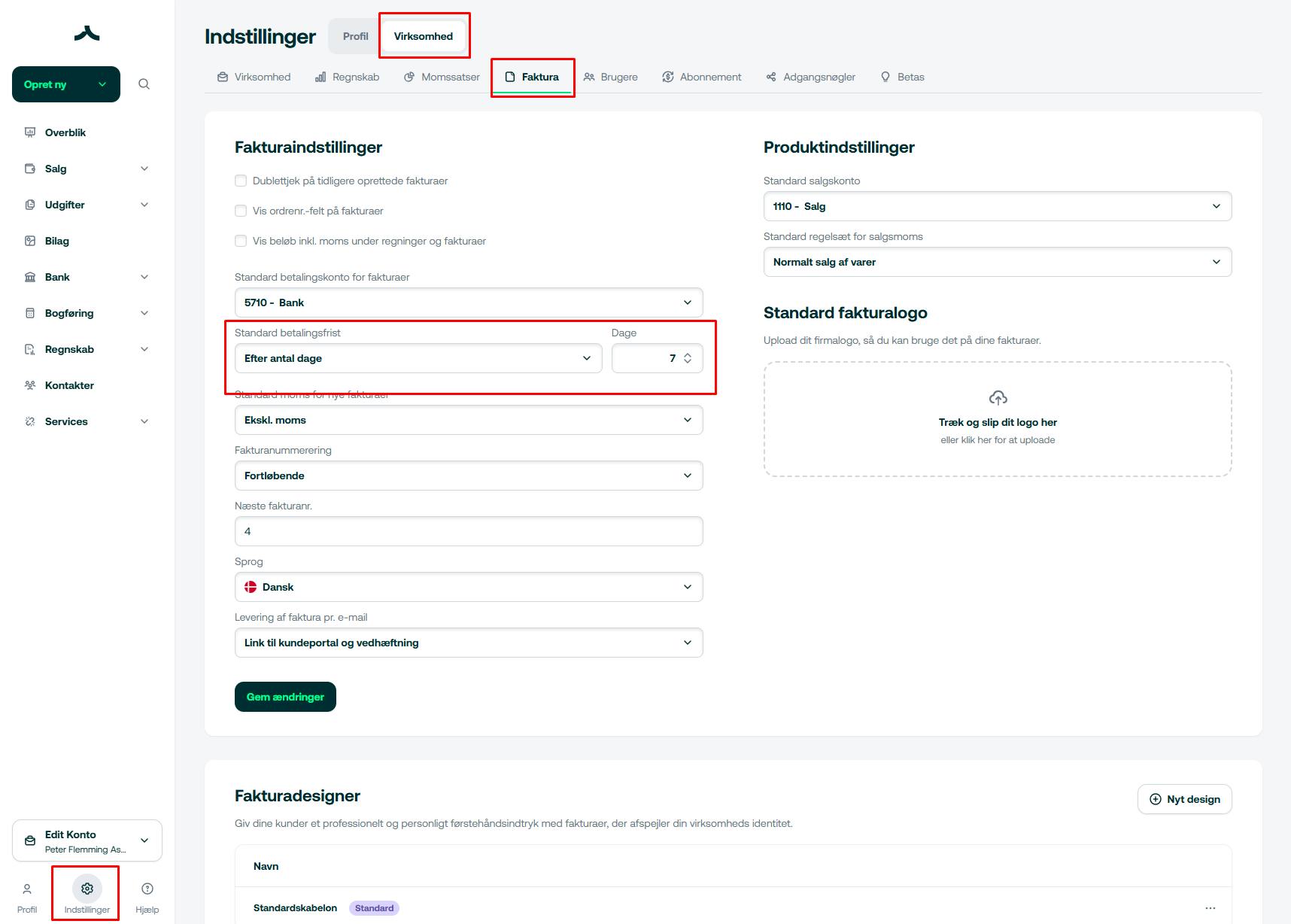 - Indstil nu din betalingsfrist for alle de fakturaer du sender ud.