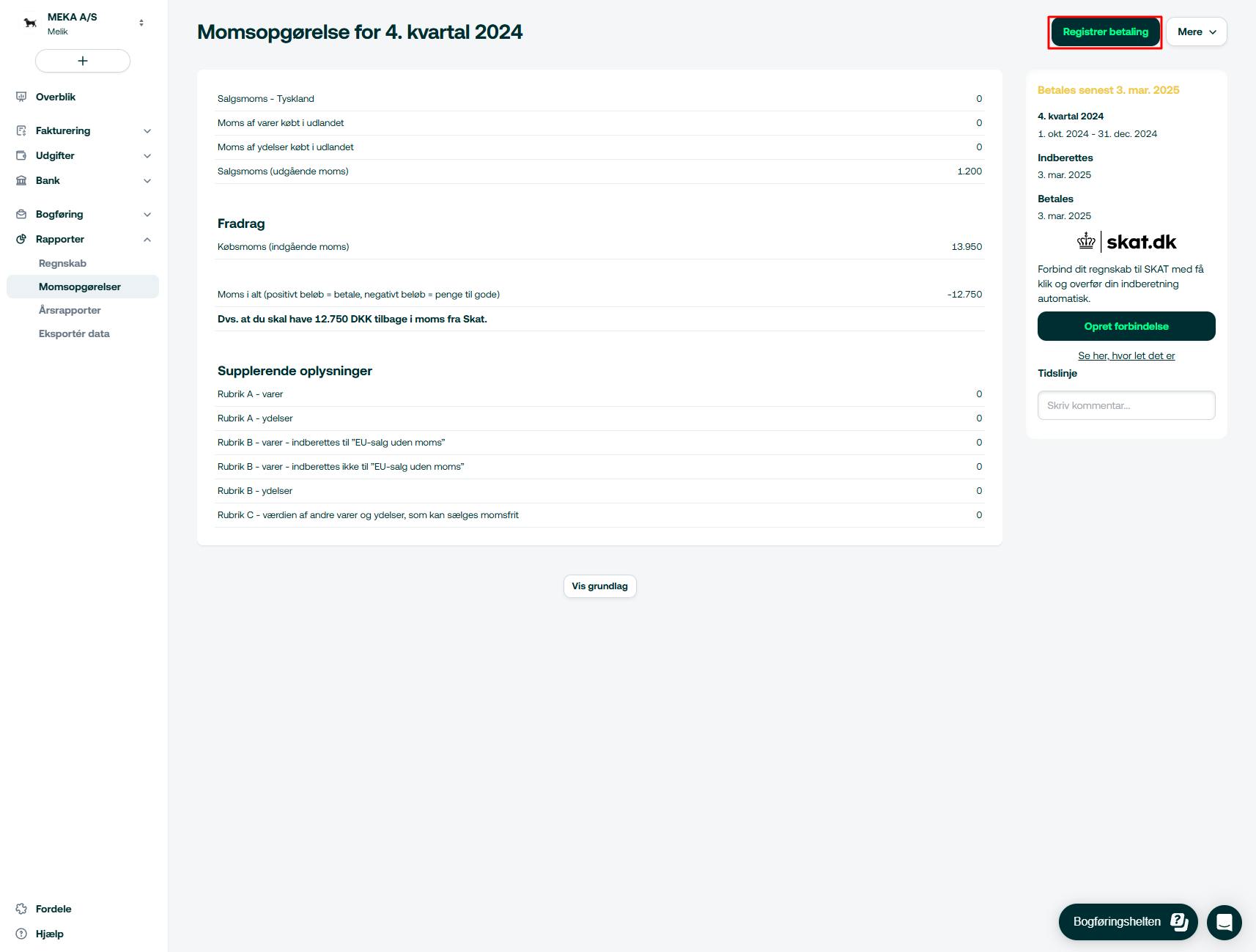 Du benytter vores momsopgørelse og skal registrere betalingen
