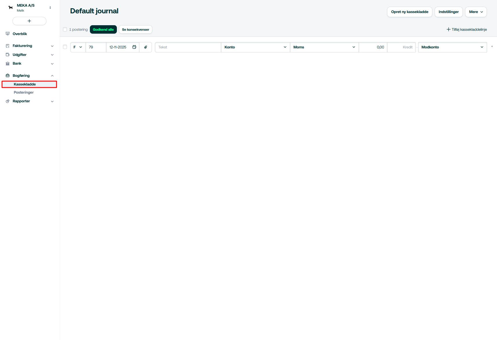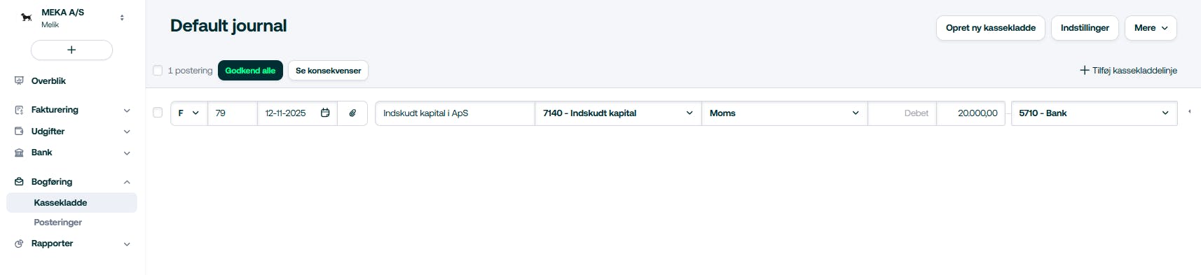 Når du har godkendt transaktionen, har du bogført den indskudte kapital.