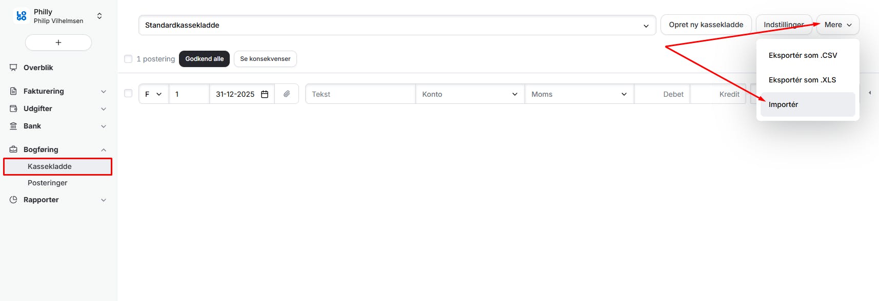 - Vælg Kassekladde