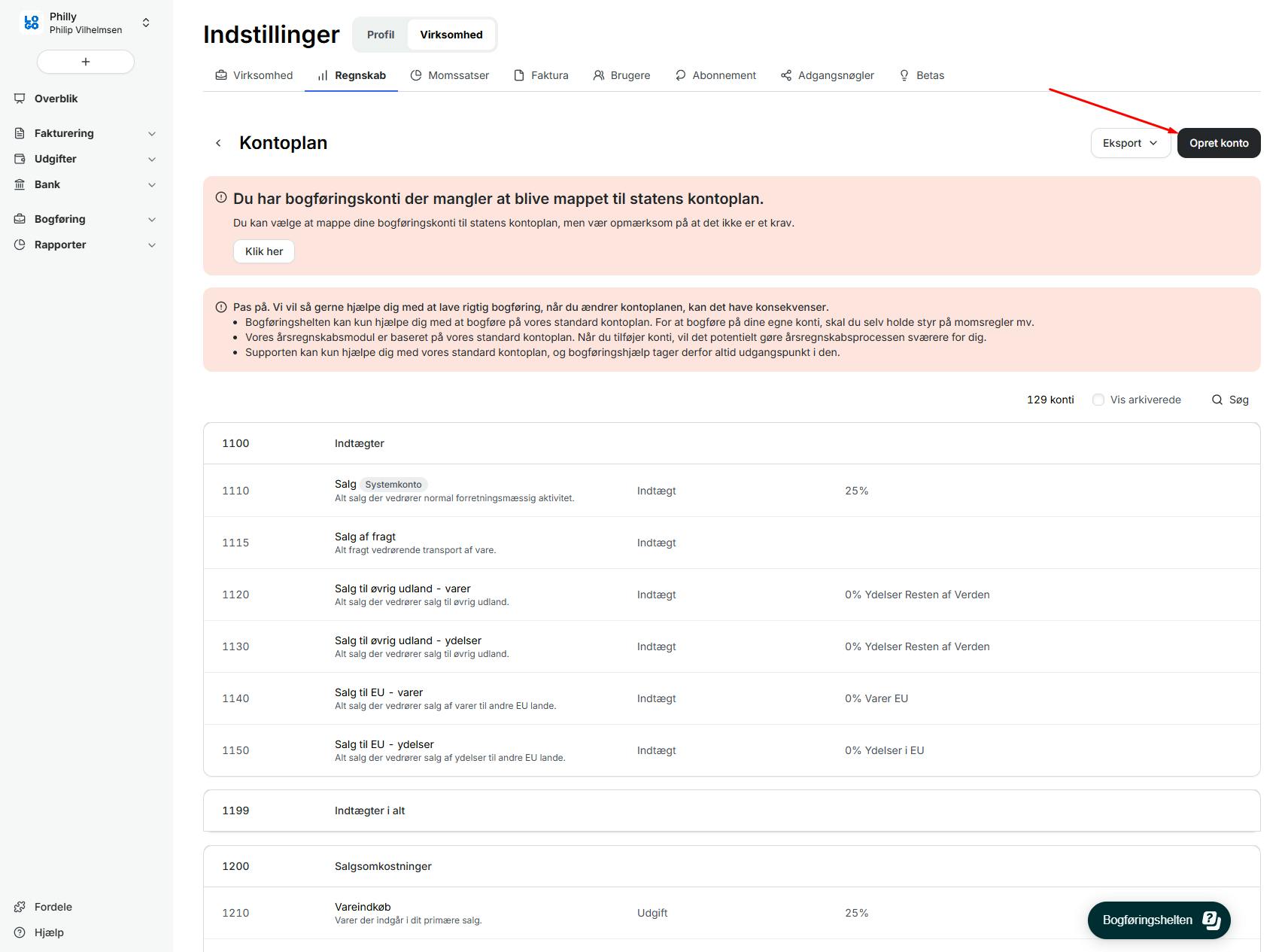 1. Kontoen skal oprettes i Billy