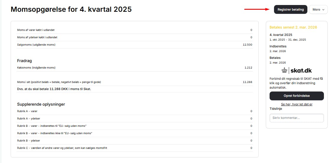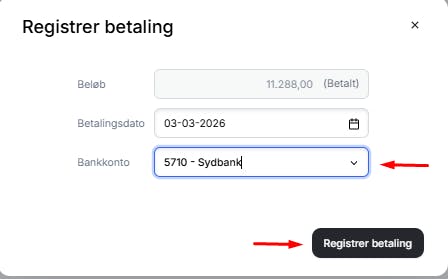 - Nu skal du blot registrere betalingen. Det gør du sådan her: