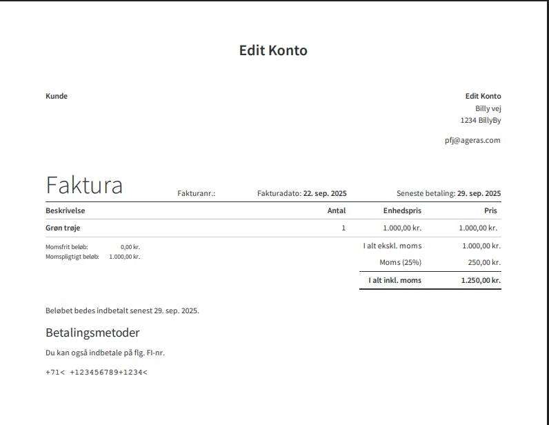 Her er et eksempel på, hvordan det kommer til at se ud på en faktura: