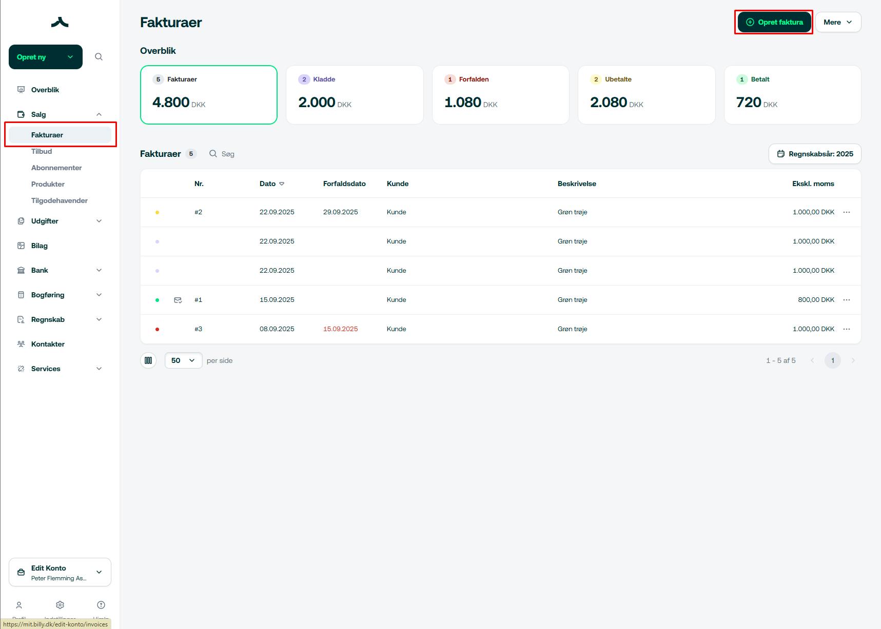 - Vælg den kunde du ønsker at sende fakturaen til under Vælg kunde.