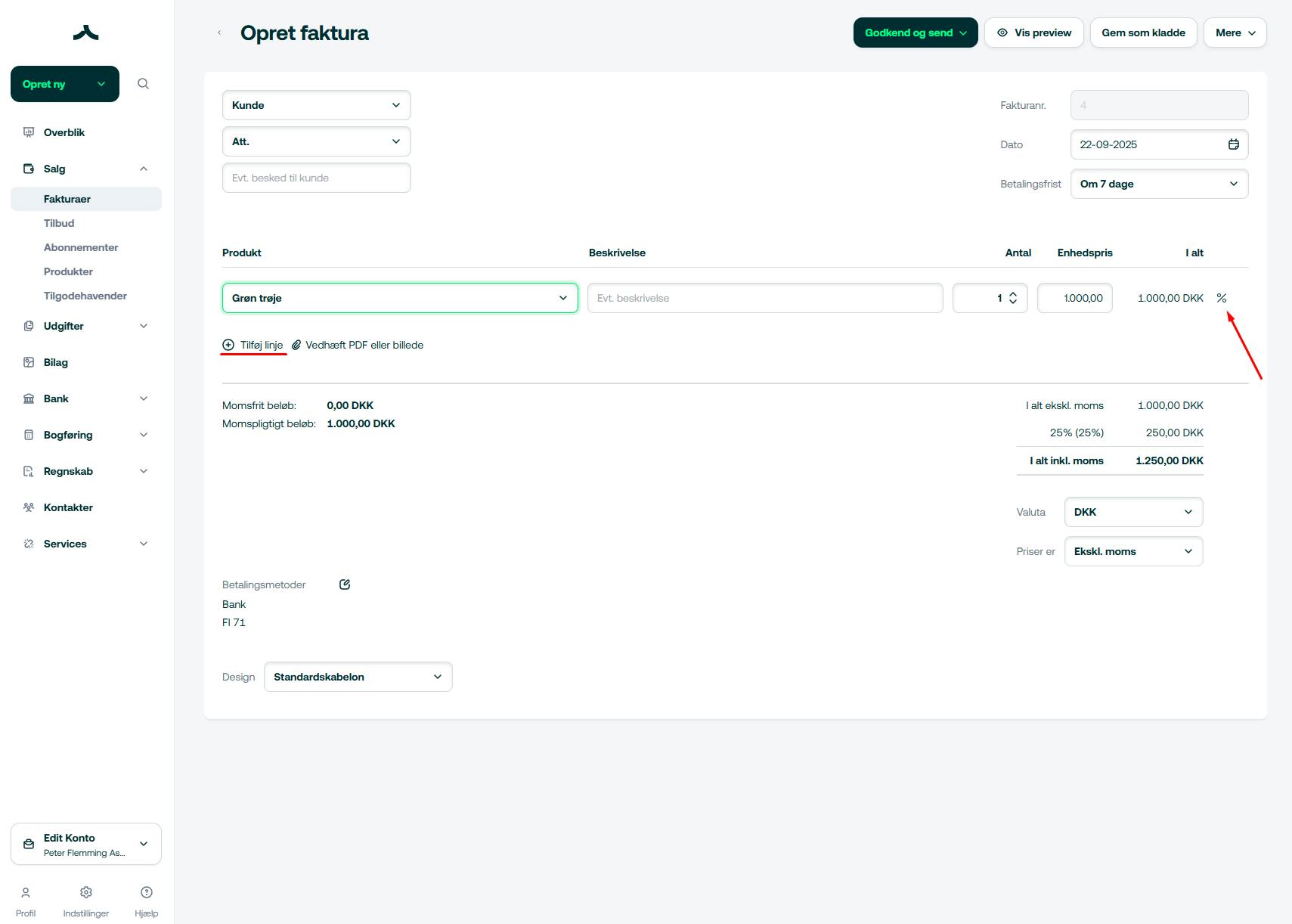 - Klik på + Tilføj linje hvis du skal tilføje et produkt.