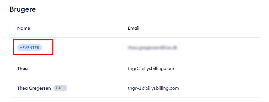 Invitationen bliver nu sendt ud pr. email. Du vil kunne se at personen står som Afventer indtil de har accepteret invitationen.
