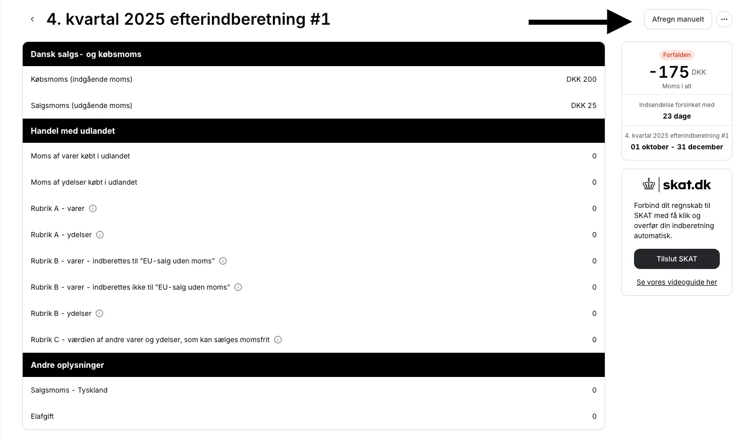 - Klik Mere → Afregn manuelt