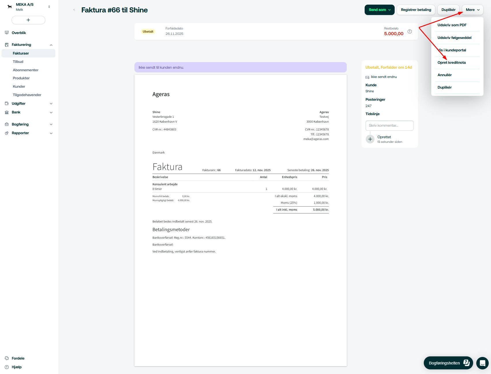 - Tryk på Kreditér regning