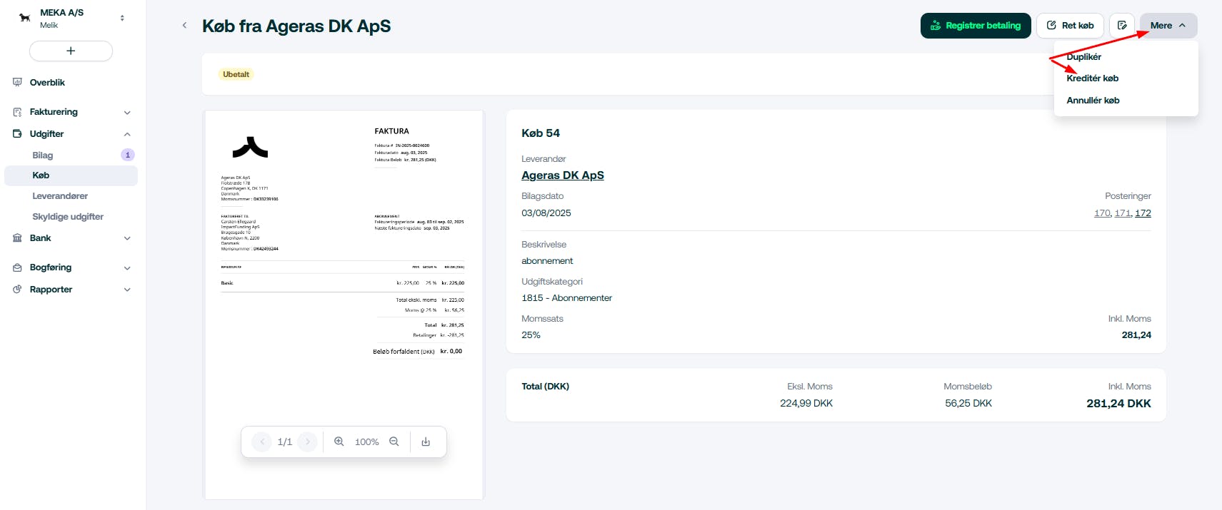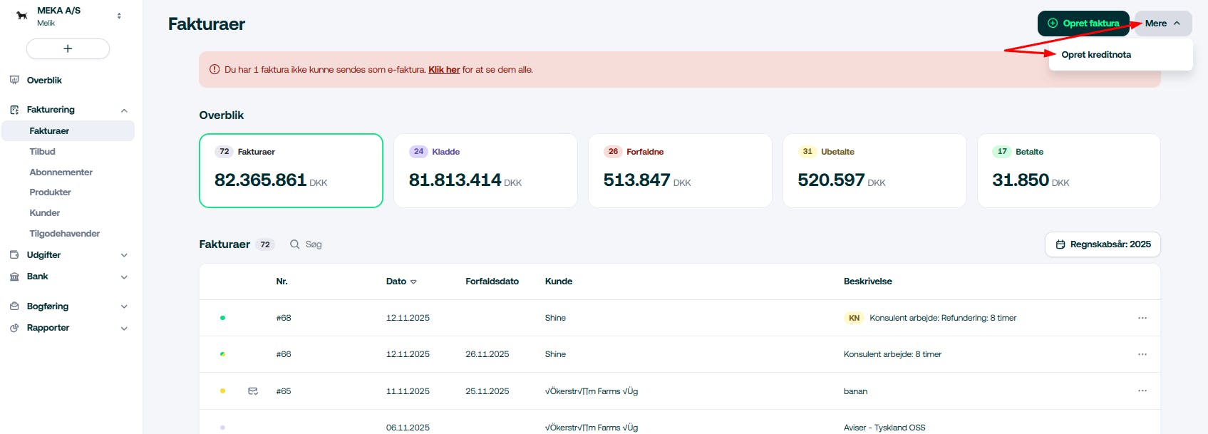 - Klik ind på fakturaen med fejl