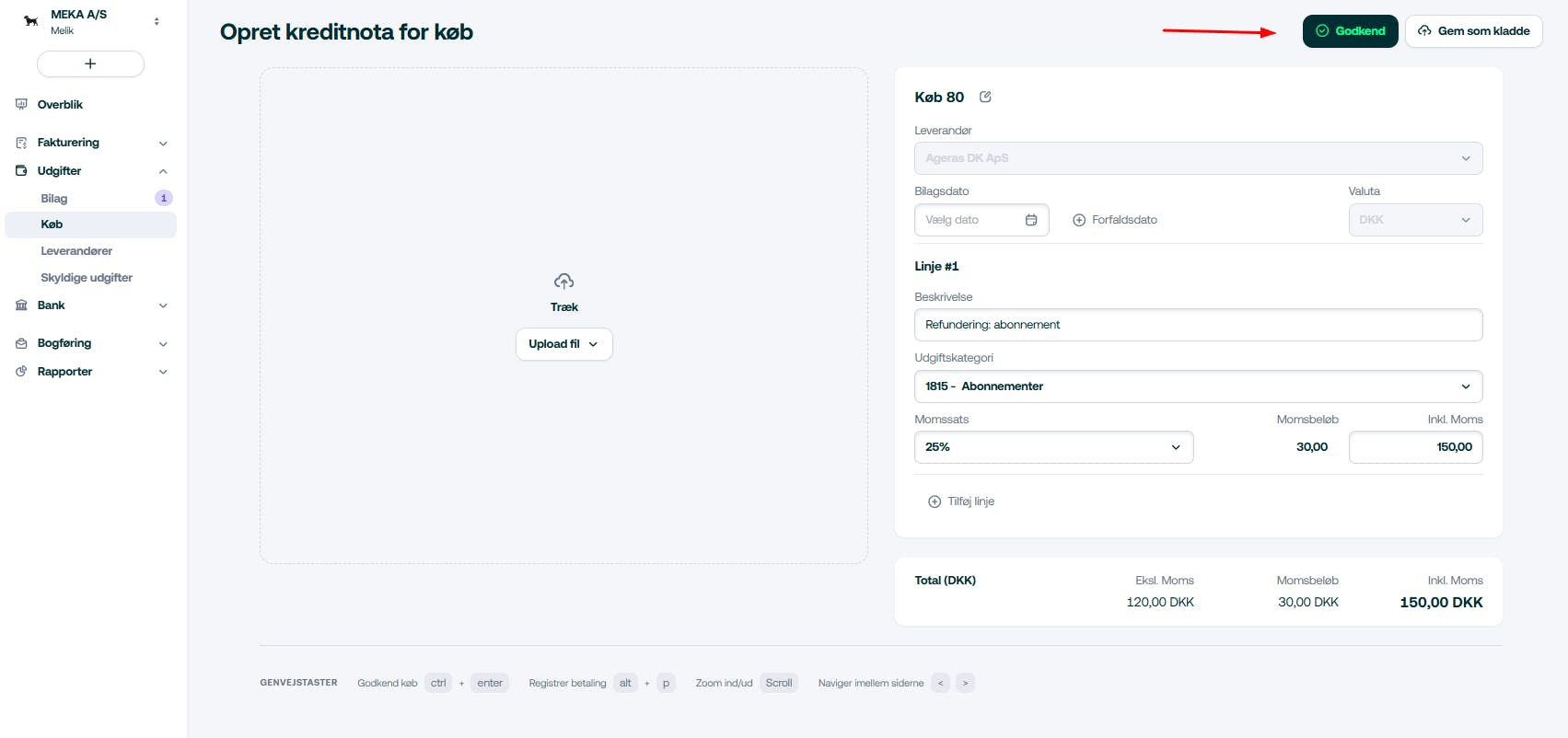 - Tryk på Opret kreditnota