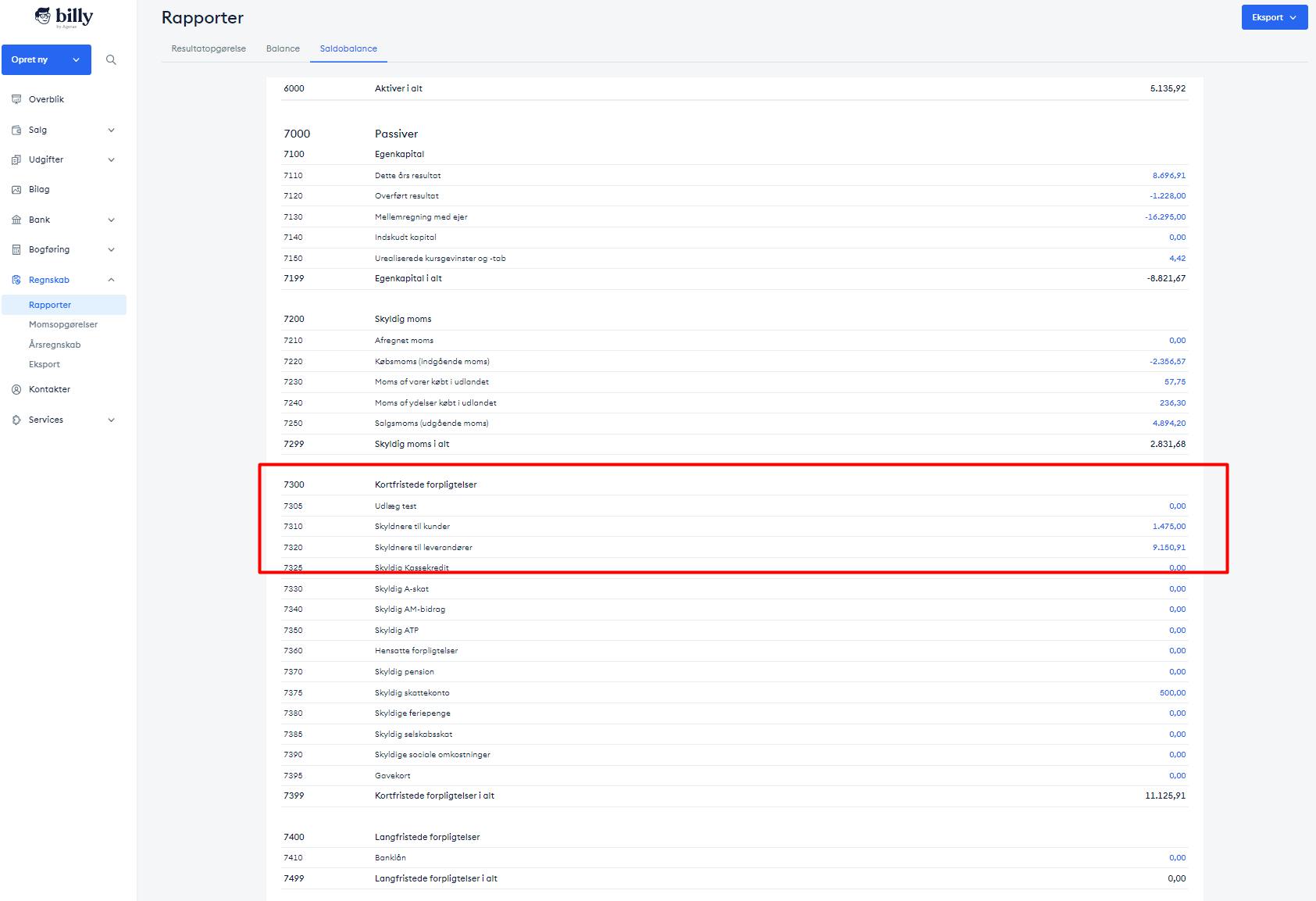 Du kan altid se hvor meget virksomheden skylder medarbejderen, ved at gå ind på balancen under Regnskab->Rapporter-> Balance -> Kortfristede forpligtelser: